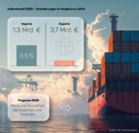 Außenhandel 2025 – deutlicher Anstieg bei Importen, leicht steigende Exporte
