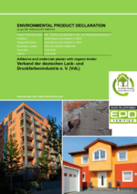 Die ersten Verbands-EPDs für organischen Ober- und Unterputz, sowie Kleber und Haftvermittler wurden 2010 vom VdL entwickelt und nach der Verifizierung durch das Institut Bauen und Umwelt (IBU) veröffentlicht. Die sechs Verbands-EPDs wurden turnusmäßig aktualisiert und an die neue Fassung der EN 15804+A2 angepasst. Änderungen sind die Berücksichtigung von weiteren Lebenszyklusphasen sowie die Verwendung von überarbeiteten Umweltindikatoren und neuen Berechnungsmethoden in der Wirkungsabschätzung. Die vierte Version konnte nach erneuter Verifizierung durch das IBU im Juni 2025 veröffentlicht werden.