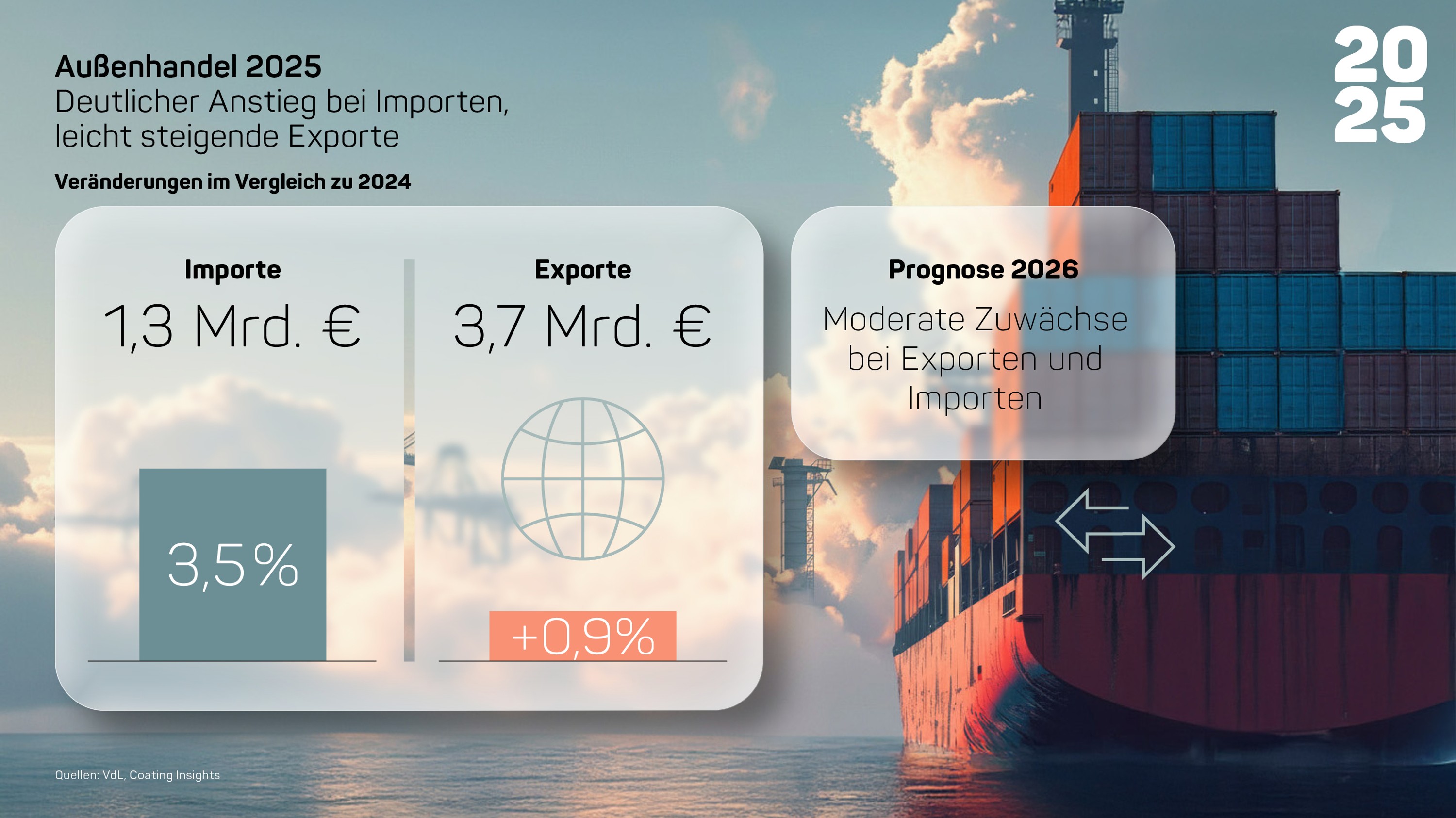 Leichtes Wachstum vermeldet der internationale Handel: 2025 wurden Waren im Wert von 3,7 Milliarden Euro exportiert, rund 1 % mehr als im Vorjahr. Die Umsätze aus Importen stiegen deutlich an: ein Plus von 3,5 %. Insgesamt wurden Waren im Wert von 1,3 Milliarden Euro importiert. Für 2026 erwartet der VdL moderate Zuwächse bei den Exporten, begünstigt durch eine leicht positive Konjunktur im Ausland. Auch die Importe sollen leicht steigen.